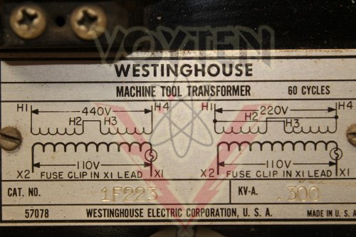 WESTINGHOUSE, MACHINE TOOL TRANSFORMER, 60Hz .300KVA 440-110V 220-110V, CAT# 1F223