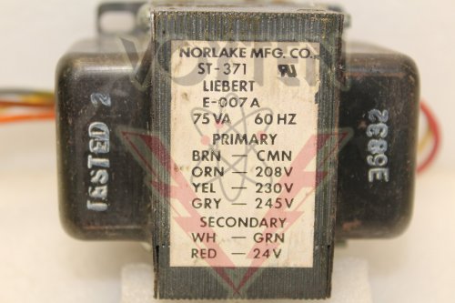 NORLAKE MFG. CO., PRI. V. 208-245V, SEC. 24V, 75VA 60Hz, STYLE# ST-371, CAT# E-007 A