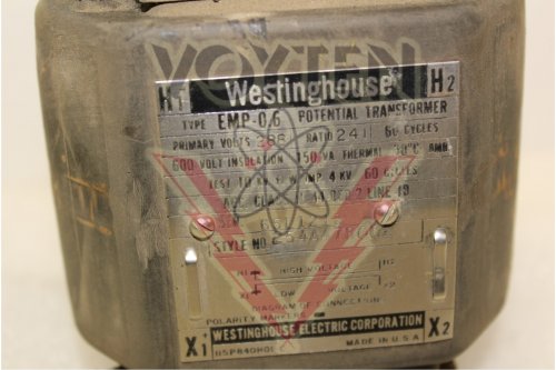 WESTINGHOUSE POTENTIAL TRANSFORMER TYPE EMP-0.6 PRIMARY VOLTS: 288 RATIO: 2.4:1 150 VA. THERMAL 30 DEGREE CELSIUS AMB. TEST 10 KV.F.W.IMP.4 KV.60 HZ CAT# 254A478G02