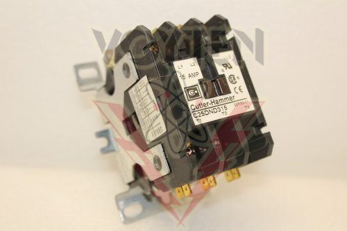 C25DND315B CONTACTOR BY EATON, CUTLER-HAMMER OR WESTINGHOUSE EATON, DEFINITE PURPOSE CONTACTOR, SERIES C1, AMPS FL: 15 IND 20 RES, COIL: 208/240V 50/60HZ, 3 POLES, OPEN TYPE, CAT# C25DND315B New Surplus Inventory Code: A Make an Offer Send to a Friend POLES: 3 AMPS: 15A VOLTAGE: 208/240V WAREHOUSE: MC4A2 Return To Motor Controls