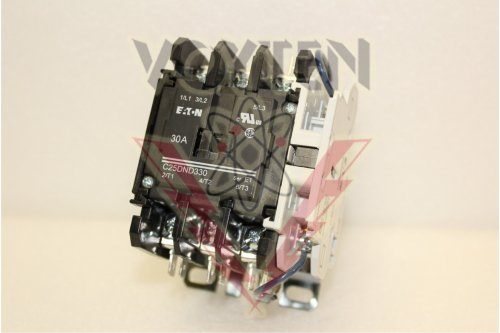 C25DND3301T Definite Purpose Contactor by Eaton, Cutler-Hammer or Westinghouse Eaton, Definite Purpose Contactor, Amps Fl: 30 Inductive, 40 Resistive, Coil: 24VDC 3 Poles, Open Type, Cat# C25DND3301T New Surplus Inventory Code: G Make an Offer Send to a Friend POLES: 3 VOLTAGE: 24VDC WHSE Code: MC6B2 Return To Motor Controls