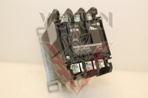 EATON, DEFINITE PURPOSE CONTACTOR, AMPS FL: 40 INDUCTIVE, 50 RESISTIVE, COIL: 24VAC 50/60Hz, 3 POLE, OPEN TYPE, CAT# C25DNE340T