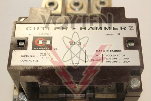 CUTLER-HAMMER, CONTACTOR, SERIES C1, 3 POLE, 350 AMP, 600V, COIL 120/60HZ 110/50HZ 1891-1, CAT# C832LN1