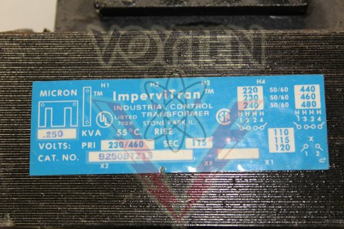 IMPERVITRON INDUSTRIAL CONTROL TRANSFORMER PRIMARY VOLTS 230/460 VOLTS SECONDARY VOLTS 115 CAT# B250BTZ13