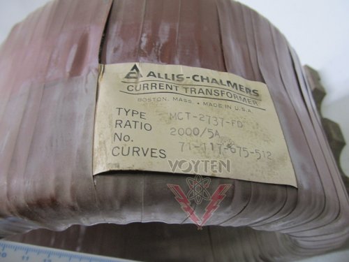 ALLIS-CHALMERS CURRENT TRANSFORMER TYPE MCT-2737-FD RATIO 2000:5 A HIGHT 9" WIDTH 9" INSIDE WINDOW 7" CAT# 71-117-675-512