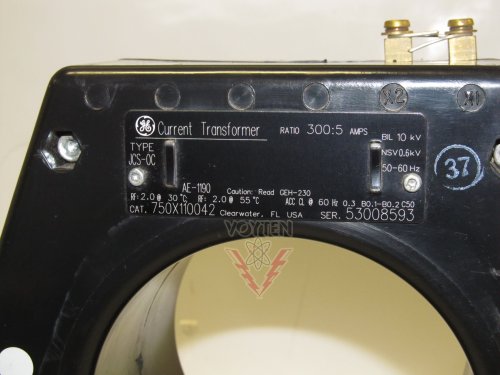General Electric, JCS-0C Current Transformer, NSV 0.6 KV, BIL 10 KV, 50/60Hz, Ratio 300:5, Height 9.71", Width 8.26", Window Width 5.19", Cat# 750X110042