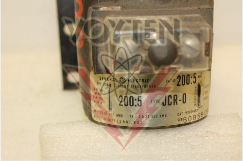 General Electric, JCR-0 Current Transformer, Ratio 200:5A, NSV 0.6kV Bil 10kV 50-60Hz, RF=3.0 At 30C Amb RF=2.0 At 55C Amb, Acc Cl At 60Hz 0.3 B0.1 B0.2, Donut Type, Cat# 750X34G52