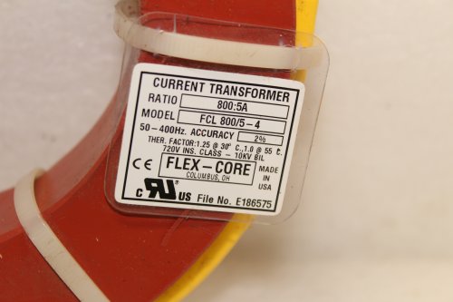 FLEX-CORE, CURRENT TRANSFORMER, RATIO 800:5A, 50-400HZ ACC. 2% THER. FACTOR 1.25 @ 30C, 1.0 @ 55C, 720V INS. CLASS - 10kV BIL, DONUT TYPE, CAT# FCL800-5-4 OR FCL800/5-4