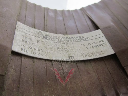 ALLIS CHALMERS CURRENT TRANSFORMER TYPE FD 25 TO 133 HZ RATIO 300:5 IC 0.6 KV BIL 10 KV CAT# FD-300