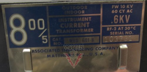 WE0601-8 CT by Instrument Transformer INSTRUMENT CURRENT TRANSFORMER RATIO 800:5 A FW 10 KV 60 HZ .6 KV CAT# WE0601-8 Reconditioned Inventory Code: C Make an Offer Send to a Friend WEIGHT: 12 HEIGHT: 7 1/2" WIDTH: 5" WINDOW WIDTH: 3" RATIO: 800:5 IC KV: 0.6 WHSE: BSK# 11 Return To Electrical Transformers
