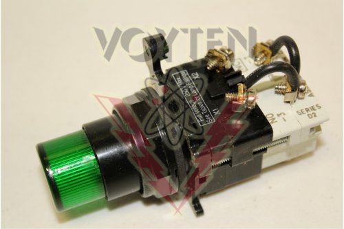 EATON CUTLER HAMMER OR WESTINGHOUSE COPR RESIST PRESTEST LIGHT FULL V 24 GREEN LED W/1NO-1NC GREEM PLASTIC LENS CAT#E34FPB297LGP24
