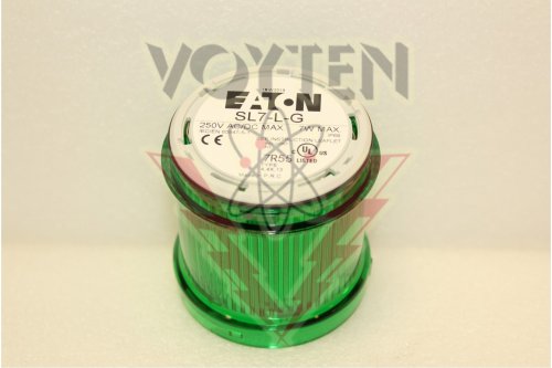 SL7-L-G Green Continuous Light by Eaton, Cutler-Hammer or Westinghouse Eaton, SL7 Green Continuous Light, 250VAC/DC Max, 7W Max, Cat# SL7-L-G New Surplus Inventory Code: D Make an Offer Send to a Friend WHSE Code: M2D2 Return To Misc Electrical Components and Parts