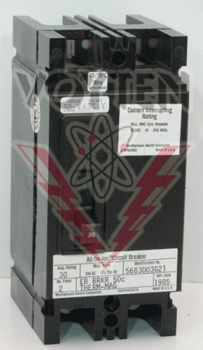 EB2030 Circuit Breaker by Eaton, Cutler Hammer or Westinghouse WESTINGHOUSE CIRCUIT BREAKER 30 AMPS 2 POLES 240 VAC CAT# EB2030 STYLE# 4990D03G21 Reconditioned New Surplus Inventory Code: B Make an Offer Send to a Friend Voltage: 240 V Poles: 2 Frame Amperage: 30 A Trip Amperage: 30 A Mount: Bolt-in WHSE Code: L7C3 Return To Circuit Breakers
