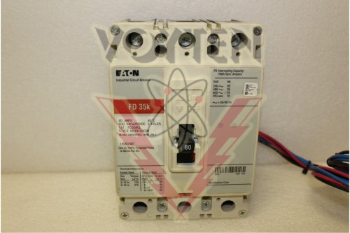 Eaton, Industrial Circuit Breaker, 3 Pole, 80Amp, 600VAC/250VDC, With Auxiliary Switch (A2X1LPK), Style# 6639C94G94, Cat# FD3080L(A2X1LPK)