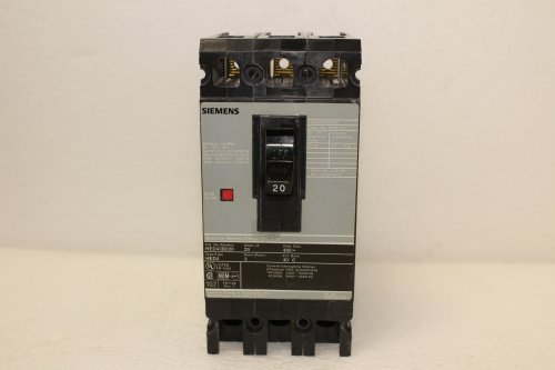 SIEMENS, HED4 CIRCUIT BREAKER, 3 POLE, 20 AMPS, 480V, CAT# HED43B020