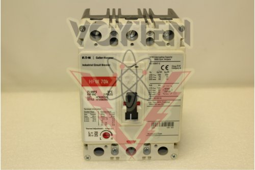 HFW3025VL Circuit Breaker by Eaton, Cutler-Hammer or Westinghouse Eaton, Industrial Circuit Breaker, 3 Pole, 25Amps, 50C, 690VAC, Cat# HFW3025VL New Surplus Make an Offer Send to a Friend POLES: 3 AMPERAGE: 25A VOLTAGE: 690VAC WHSE Code: CB18A3 Return To Circuit Breakers