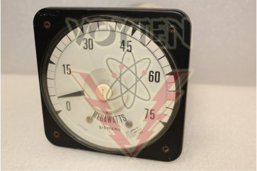 SIEMENS-CROMPTON INSTRUMENTS, A-C MEGAWATTS PANEL METER, INPUT 5 AMP 120V, SCALE: 0-75MW, CAT# 077-218AQQXXCLS