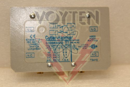 C320KGS32 Contacts by Eaton Cutler Hammer or Westinghouse CUTLER HAMMER BASE AUXILIARY CONTACTS 1 N.O. 1 N.C.SERIES A2 CAT# C320KGS32 Make an Offer Send to a Friend Return To Motor Controls