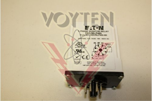 Eaton Cutler Hammer or Westinghouse 3 Phase Monitor Relay, Nominal Voltage: 190-500 VAC, 10 Amps, Cat# D65VMLP480