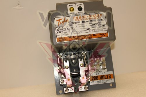 TAYLOR PHASE FAILURE RELAY 208 VAC 3 PHASE 30 AMPS FIXED TIME DELAY 1 1/2 SECONDS CAT# PND-208