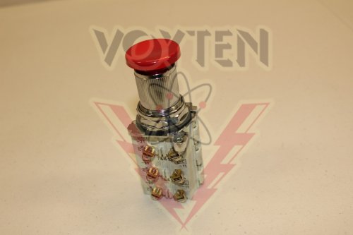 EATON AUTO LATCH PUSH BUTTON RED MUSHROOM BUTTON WITH 6 N.C. CONTACTS CAT# 10250ED1043-4-333X