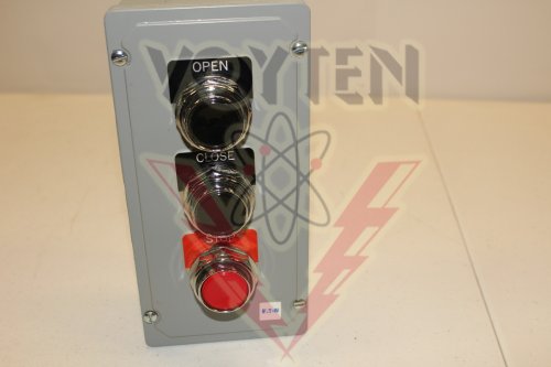 EATON PUSH BUTTON STATION OILTIGHT 3 ELEMENT OPEN, CLOSE STOP CAT# 10250T3614