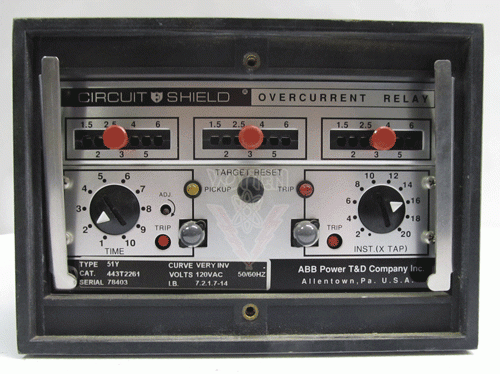 ABB OVERCURRENT RELAY, TYPE 51Y, CURVE VERY INV, VOLTS- 120 VAC, 50/60 Hz, CAT# 443T2261
