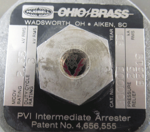 OHIO BRASS TYPE PVI INTERMEDIATE ARRESTER, MCOV RATING 2.55 kV RMS, DUTY CYCLE RATING 3 kV RMS, CAT # 300003