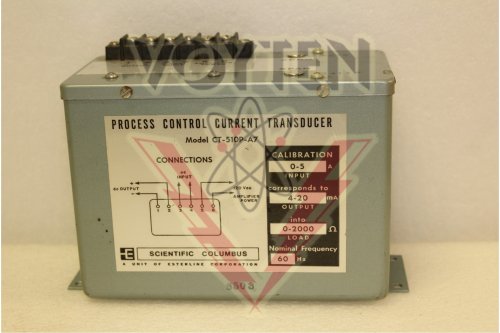 CT-510P-A7 Current Transducer by Scientific Columbus Scientific Columbus, Process Control Current Transducer, Input: 0-5Amp, Output: 4-20mA, 0-2000 Ohms Load, Cat# CT-510P-A7 Reconditioned Inventory Code: A Make an Offer Send to a Friend WHSE Code: M4E2 Return To Misc Electrical Components and Parts