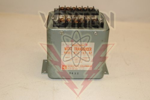 WT3-1K5-A2 Watt Transformer by Scientific Columbus SCIENTIFIC COLUMBUS WATT TRANSDUCER INPUT 120 VAC/ELEMENT 0-5 AMP / ELEMENT OUTPUT 0-1 ma D.C. INTO 0-10 k OHMS CAT# WT3-1K5-A2 Reconditioned Inventory Code: L Make an Offer Send to a Friend WHSE Code: M4B0 Return To Misc Electrical Components and Parts
